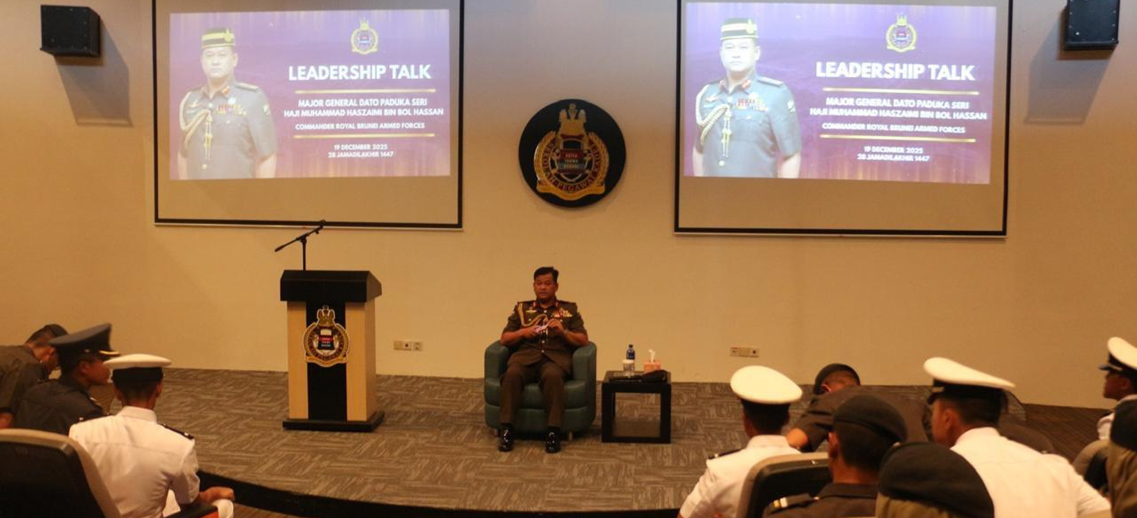 TANAH JAMBU, 19 Disember 2025 - Pegawai Kadet (PKdt) Pengambilan Ke-24 telah menghadiri sesi perkongsian kepimpinan yang disampaikan oleh Yang Mulia Mejar Jeneral Dato Paduka Seri Haji Muhammad Haszaimi bin Bol Hassan, Pemerintah Angkatan Bersenjata Diraja Brunei (ABDB), bertempat di Dewan Kuliah Sekolah Pegawai Kadet, Akademi Pertahanan Angkatan Bersenjata Diraja Brunei (SPK DA ABDB).